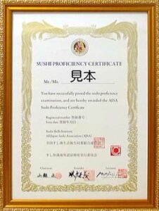 Those who complete the course and pass the exam will receive a Sushi Skills Institute certificate (Sushi Advisor certificate) issued by the Sushi Knowledge Overseas Certification System (AJSA) of the National Federation of Sushi Retailers and Health Industry Associations.